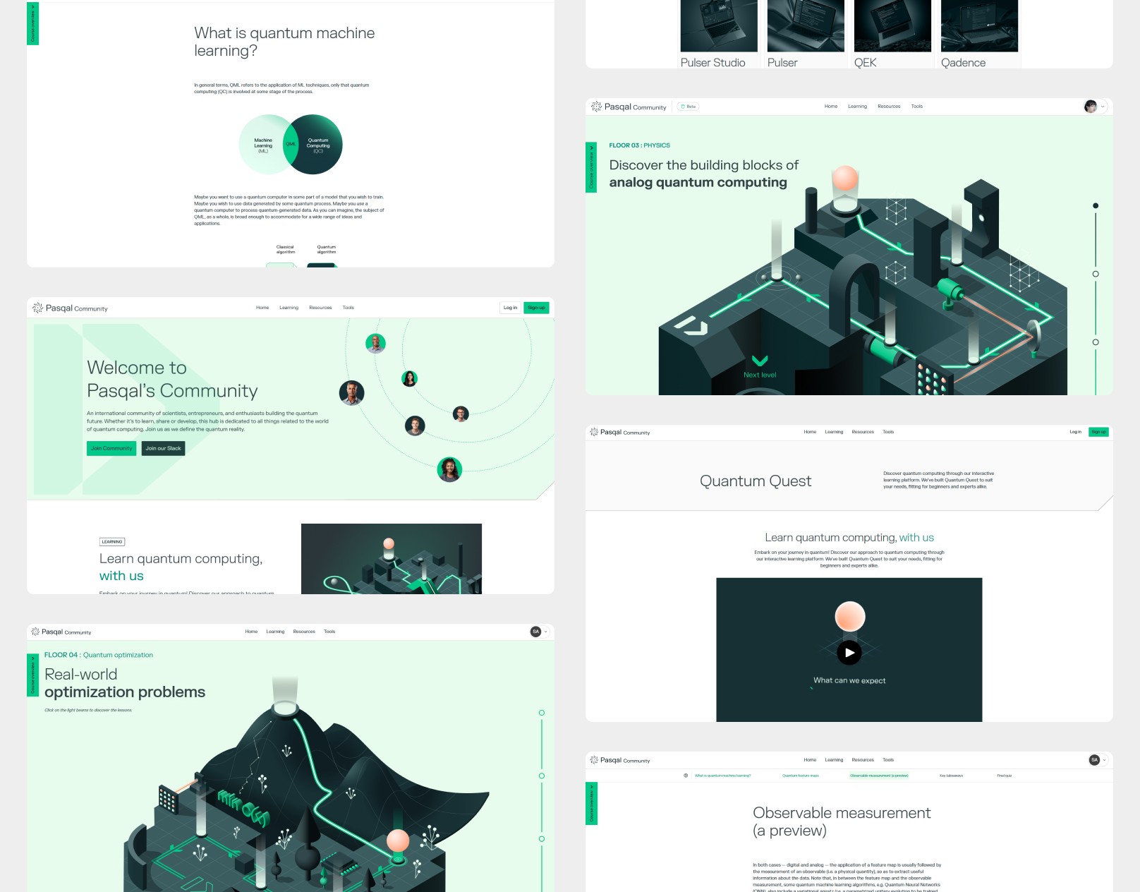 Additionally, Pasqal underwent a complete rebranding in February 2024, requiring me to update the existing design system before we could fully proceed with the design of the Community Platform. We also realized that initial deliveries and concepts we had implemented ressembled too much the brand of one of our direct competitors, so we decided to postpone the launch in order to recreate some design materials (3D Worlds, illustrations, videos).