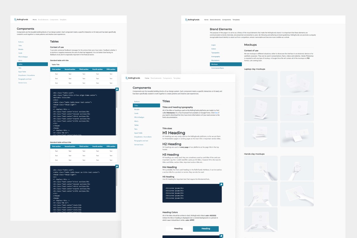 Beyond product design, I helped craft the RollingFunds brand and sub-brands. I designed and trademarked logos, created marketing and sales materials. I also participated in the front-end integration myself, which ensured pixel-perfect implementation and a constant collaboration with the engineering team.